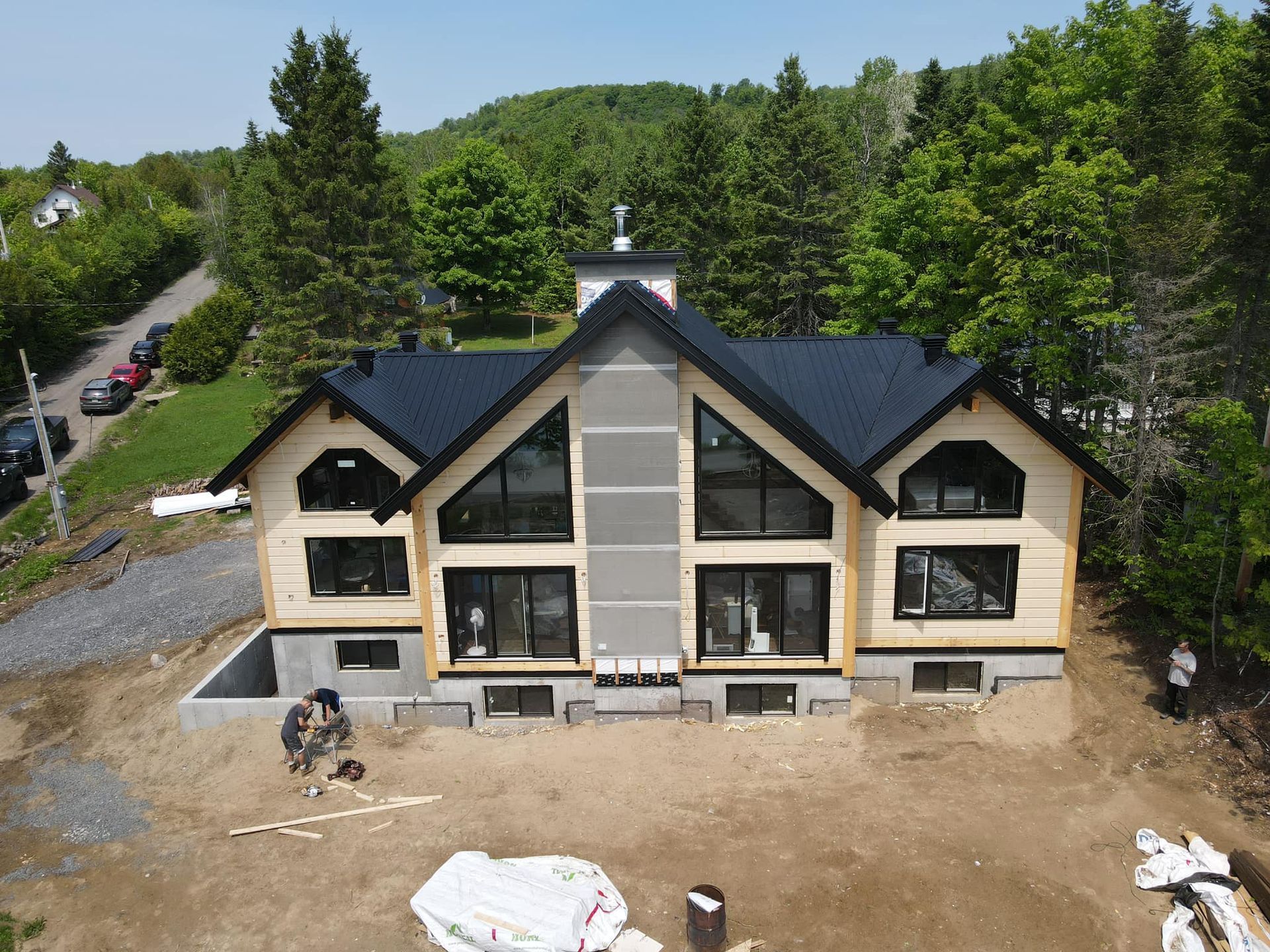 La toiture métallique est particulièrement adaptée aux propriétés de Saint-Sauveur et des Laurentides en raison des fortes chutes de neige et du relief montagneux. Les panneaux d'acier facilitent l'écoulement de la neige, réduisant ainsi la charge excessive sur le toit et minimisant le risque de formation de barrages de glace.